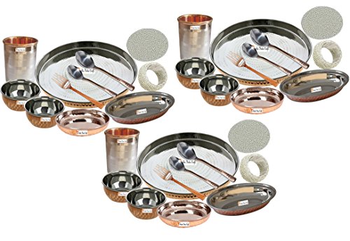 ce qui est caractéristique et les commentaires complets de Ensemble de 3 l'artisanat Inde Prisha ® Meilleur vaisselle indienne Thali cuivre acier Dia Set 13" traditionnel dîner ensemble d'assiette, Bol, cuillère, verre avec anneau de serviette et Coaster - Cadeaux de Noël ? cliquez sur lien ci-dessous
